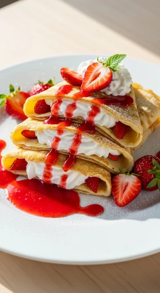 πŸ“ 15. Christmas Morning Crepes with Strawberry Sauce