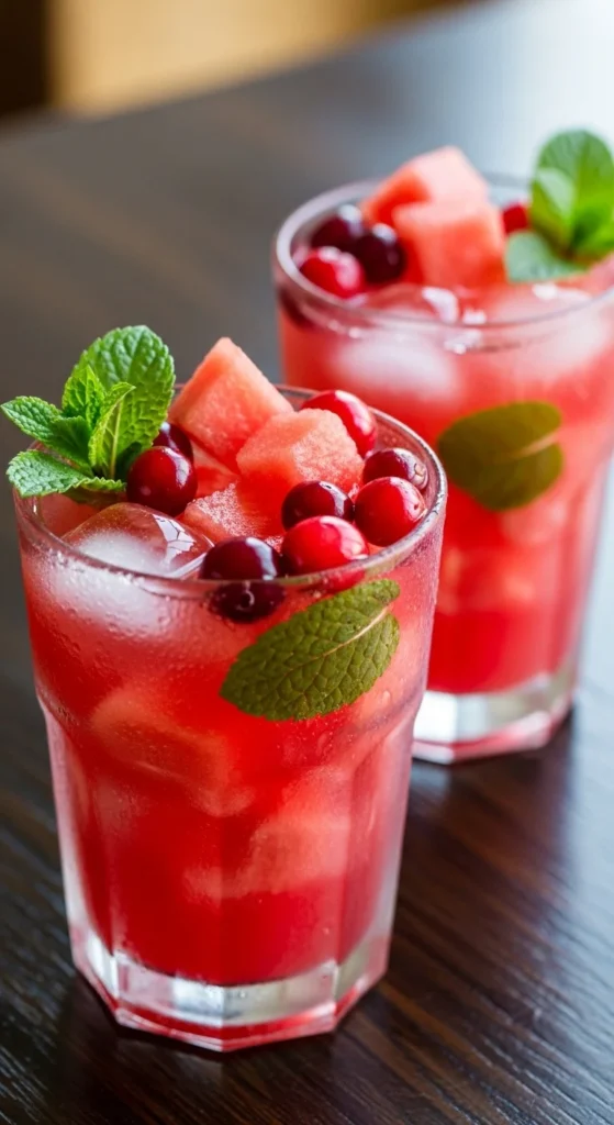 1. Mix cranberry and raspberry juice with peppermint extract.