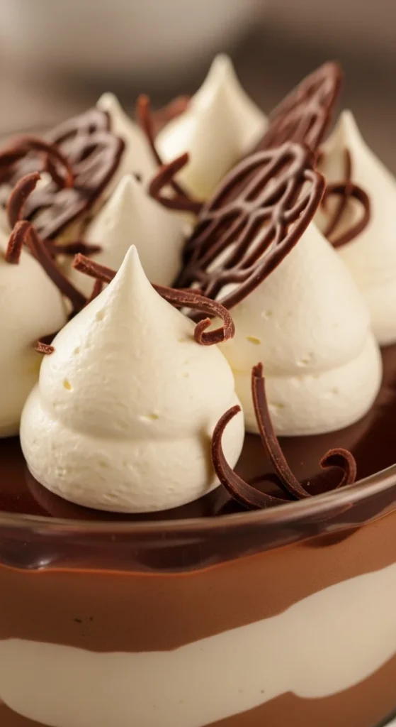 - Melt chocolate; fold into whipped cream.