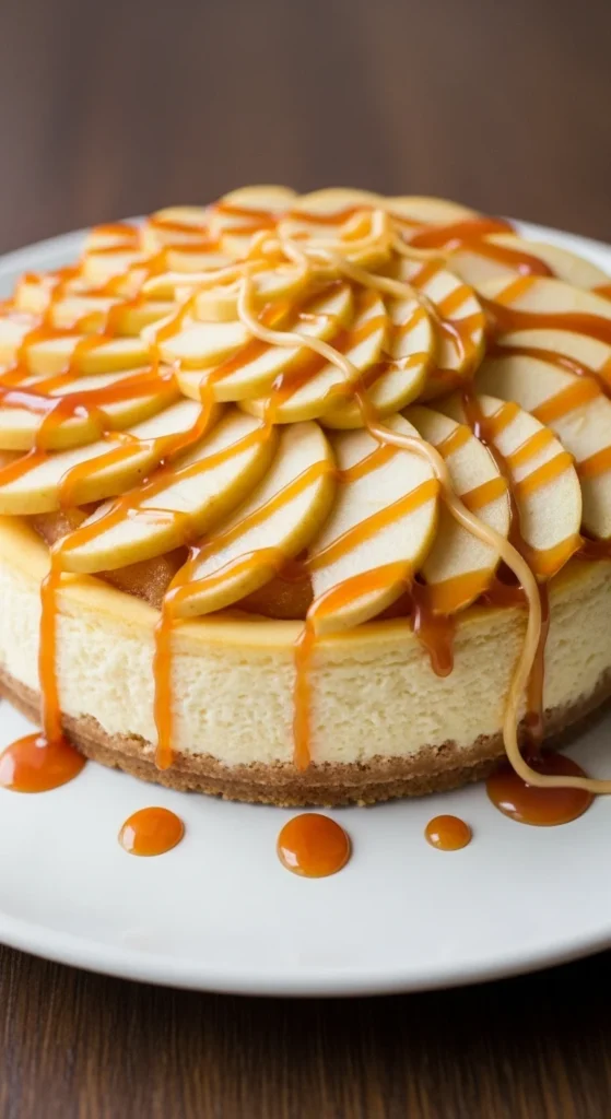 - Bake 1 hour at 325°F; top with apples and caramel.