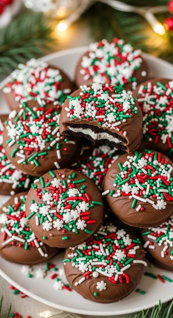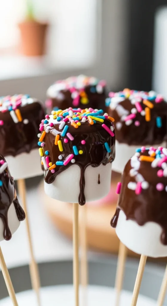 - Dip marshmallows in melted chocolate; add sprinkles. Chill 15 minutes.