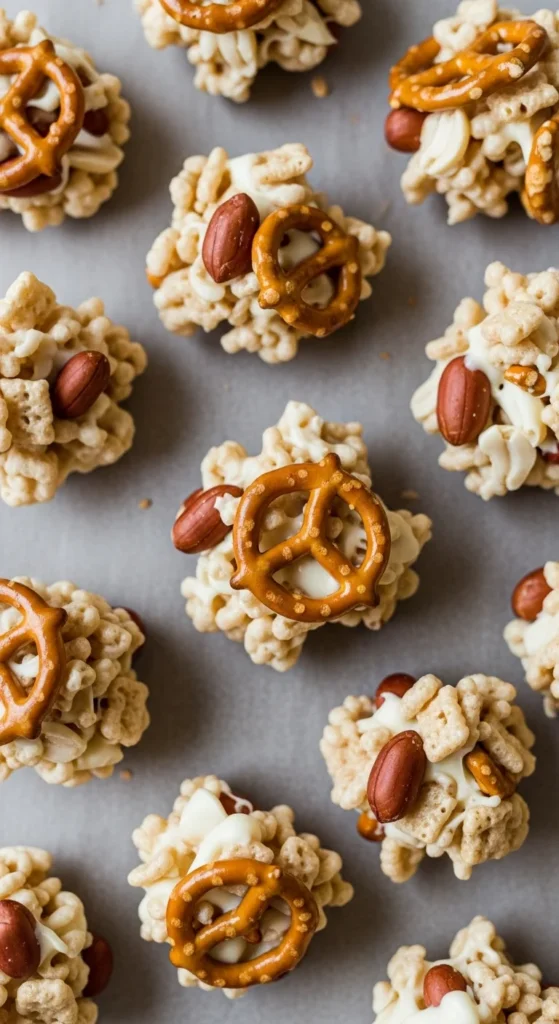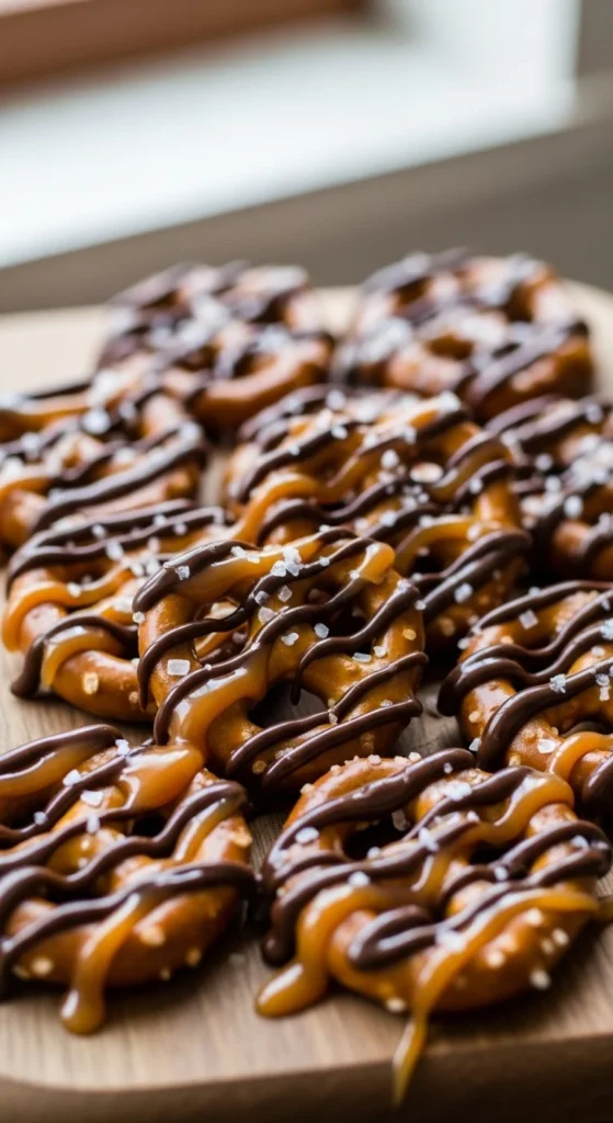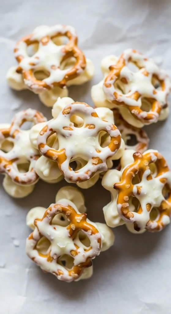 - Coat pretzels in melted chocolate; form clusters and chill.
