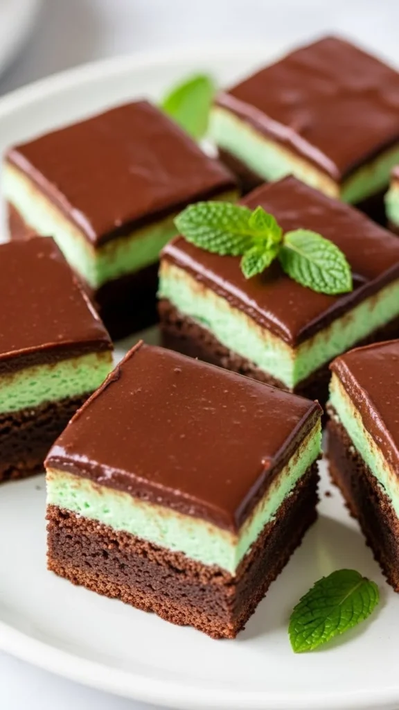 Rich chocolate brownies finished with a cool mint layer.