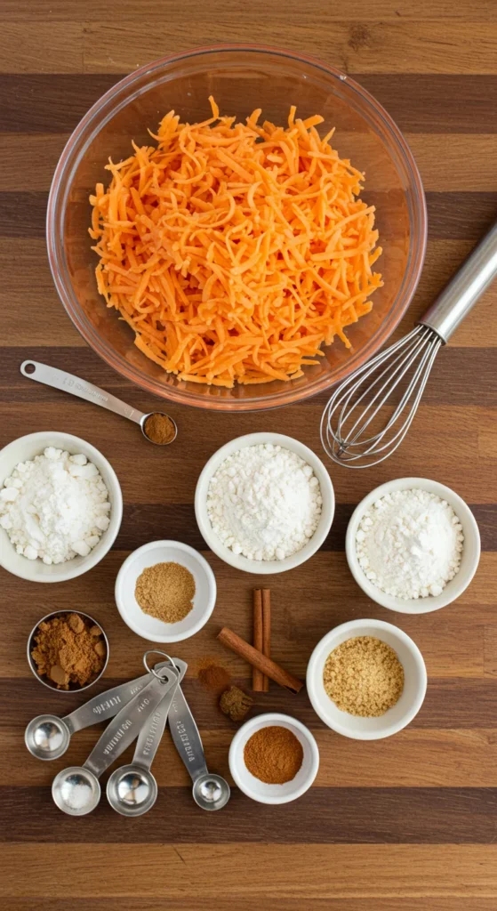 Every moist carrot cake starts with good ingredients. You likely already have most of these in your pantry.
