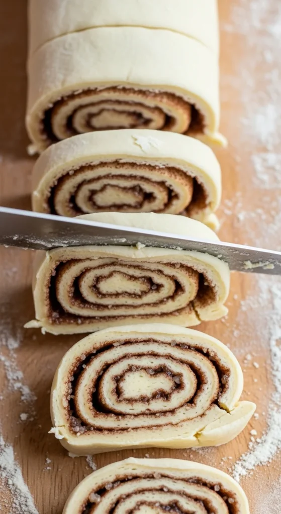 - Slice into 12 even rolls using a sharp knife or unflavored dental floss for clean cuts.