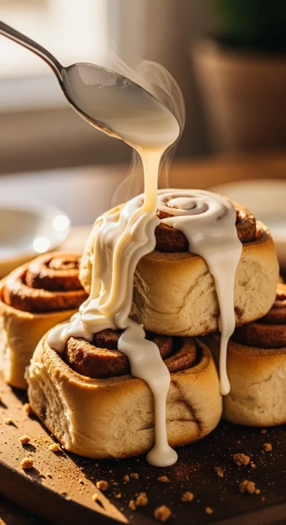 Spread the icing over the warm rolls right out of the oven — the heat helps it melt into every swirl.