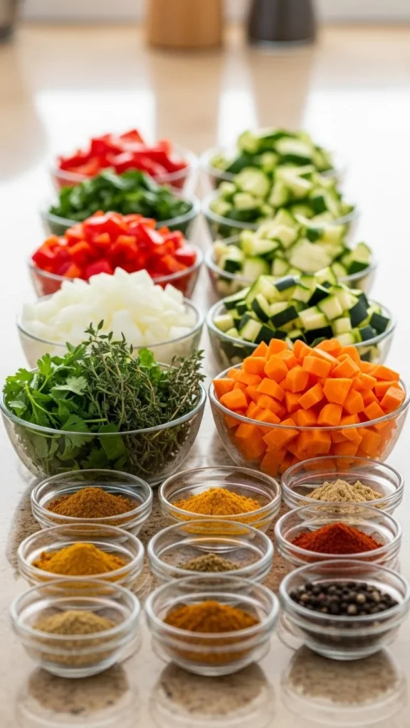 Even if you don’t fully cook ahead, prepping ingredients early can dramatically reduce stress.