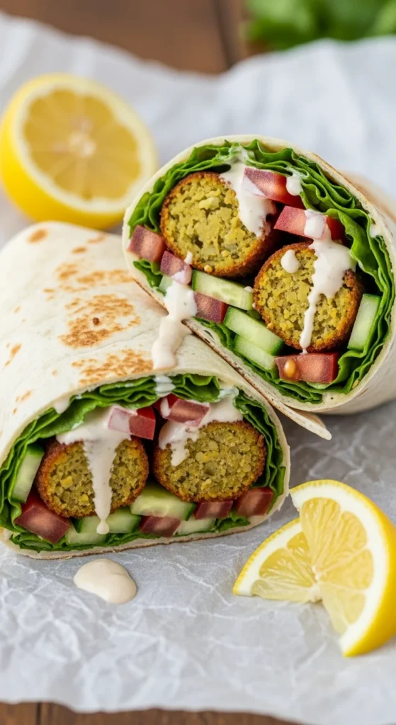 - Classic Wrap: Tuck falafel into pita bread with lettuce, tomato, cucumber, and tahini sauce.