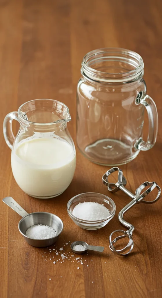 • A mason jar with a tight lid, a stand mixer, or a hand mixer