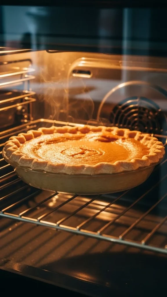 Turn off the oven, crack the door, and let the pie cool gradually. This helps prevent cracking.