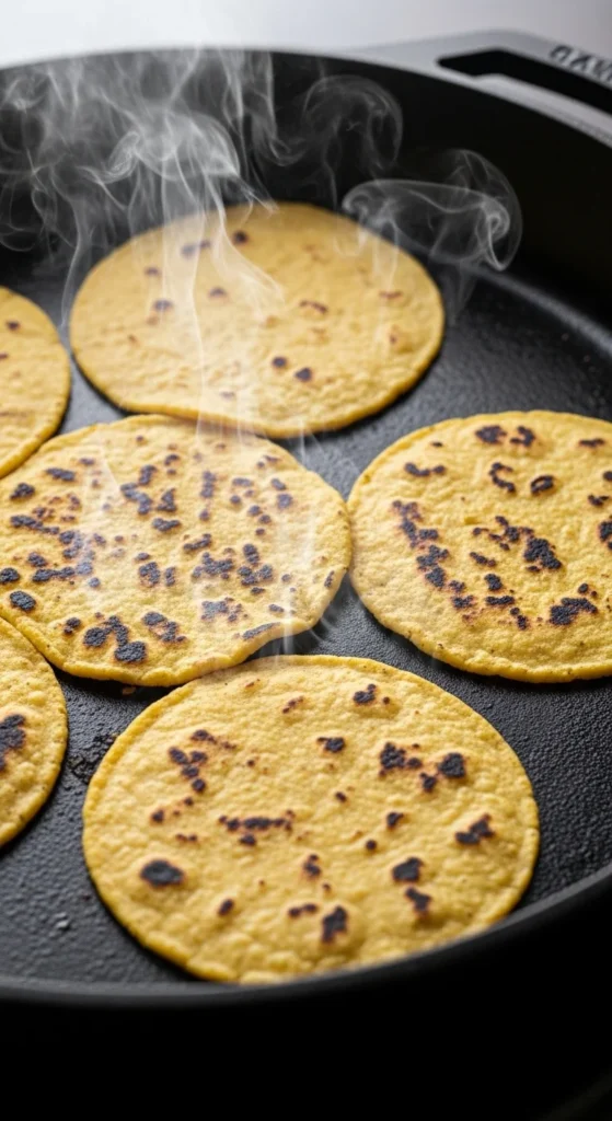 - Warm them properly: Heat a dry skillet or comal over medium heat. Warm each tortilla for 20–30 seconds per side until soft and pliable.