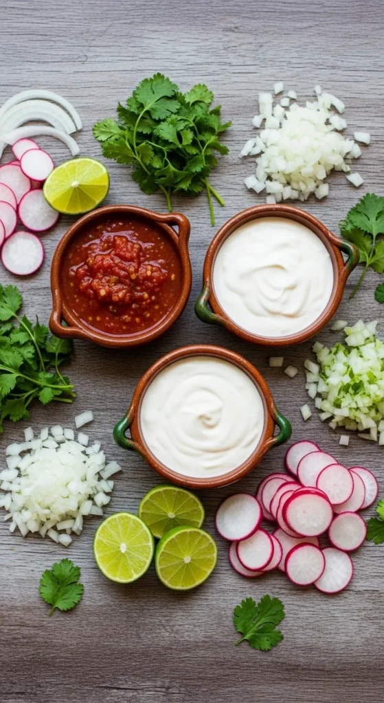 - Extras (optional): Crumbled queso fresco, avocado slices, or radish for crunch.