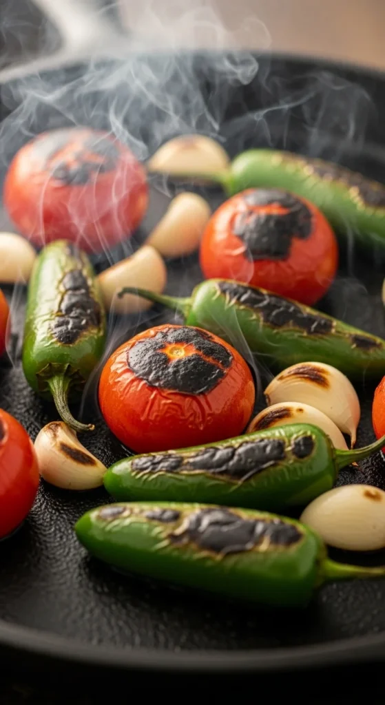 Roast everything in a skillet until charred, then blend until smooth. Adjust spice and salt as needed. The result? A smoky, fresh, perfectly balanced salsa that takes your tacos to the next level.