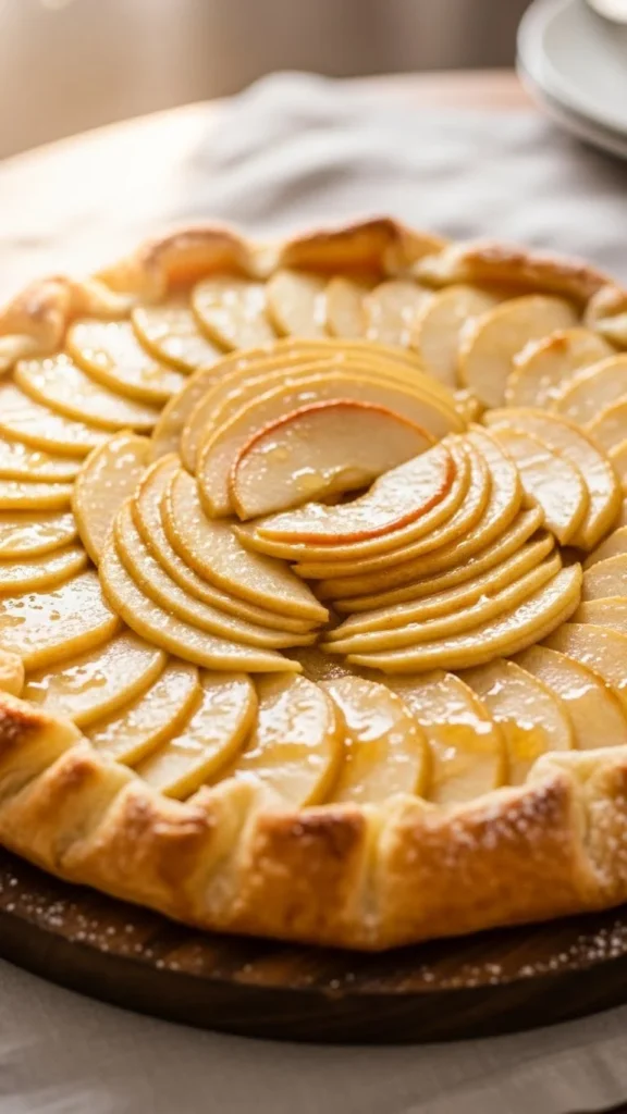 A bakery-style tart with sliced apples.