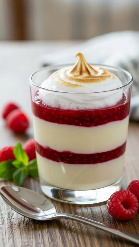 A layered dessert with jam and meringue.