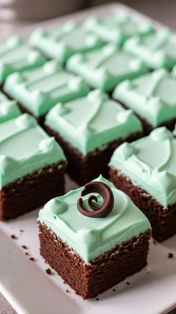 - Mix powdered sugar, cream, and mint extract. Spread on top.