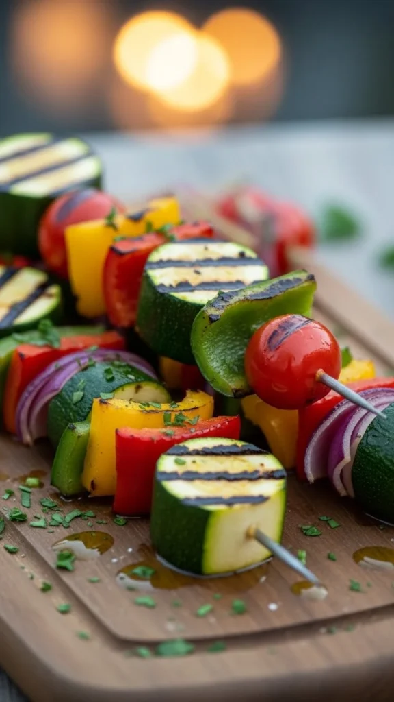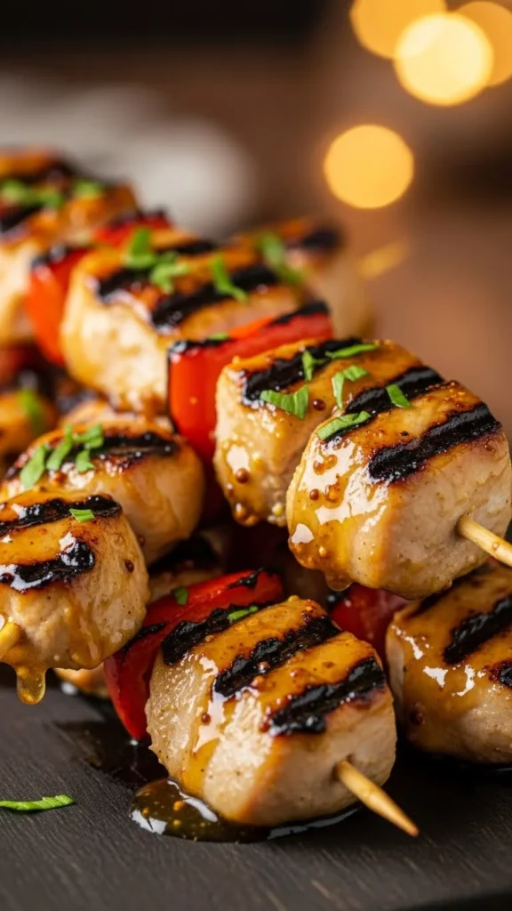 - Grill skewers for 12–15 minutes, brushing with sauce.